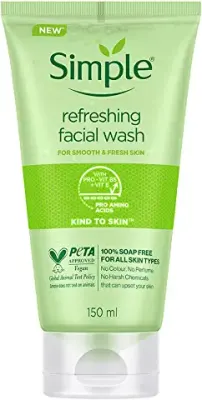 | Simple Kind To Skin Refreshing Facial Wash | 100% soap-free, non-drying, suitable for all skin types | Gentle and effective, no harsh chemicals or artificial fragrances |